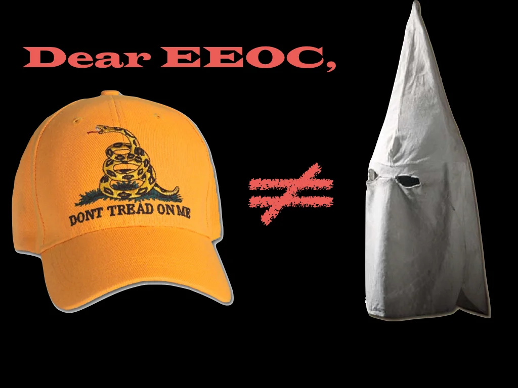 Let's start with the timing. The employee who filed the complaint first did so in 2013. The two instances where the EEOC said the Gadsden flag was used in racial ways occurred in 2014, after this employee first became offended. So, before he actually complained about it, the EEOC cannot point to any racial use of the flag that was so racially offensive. That's stupid.